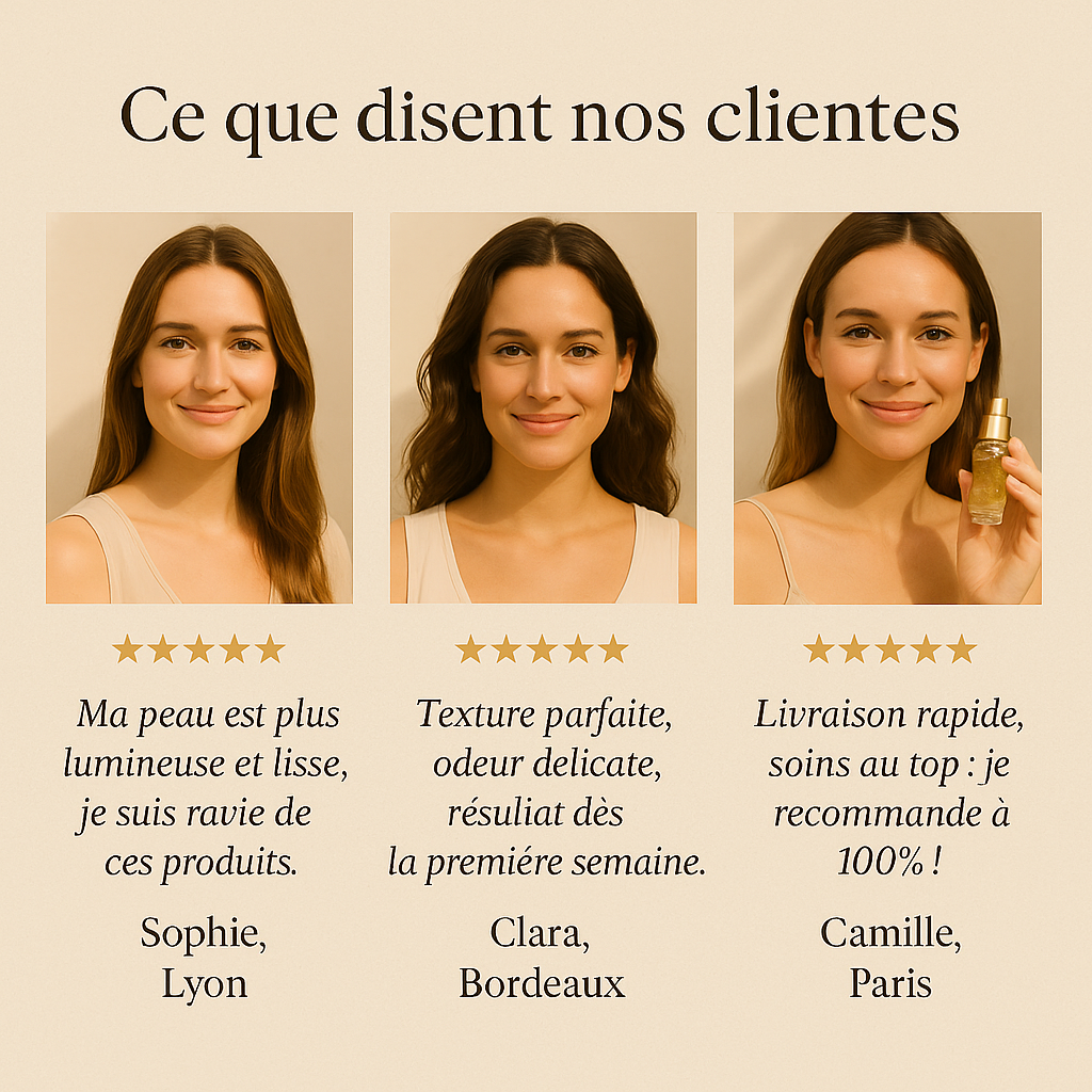 Chaque formule est pensée pour sublimer l’éclat naturel de votre peau, stimuler la production de collagène et offrir une sensation de luxe sensoriel à chaque application.